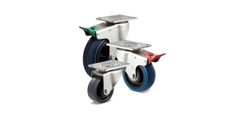 Heavy duty castors in swivel, fixed, and total brake configurations.