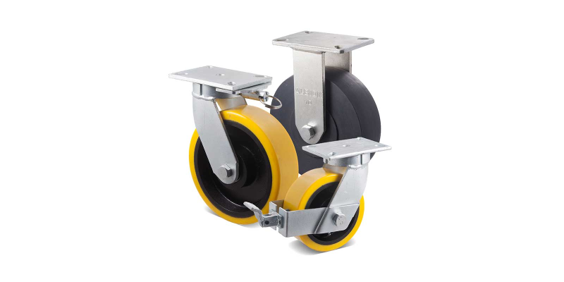 Kingpinless construction available in PU on cast iron or high impact polymer.