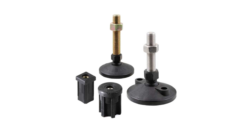 Multi-adjustable pedestal feet to stabilise machinery, equipment & furniture