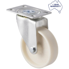 M Series castor, high-temperat ure glass-reinforced nylon 100mm wheel, plain bore, swivel North American (NA) plate, load rating 80 kg at 150C degrees