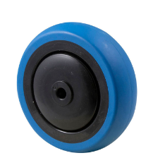 J Series, 100mm x 32mm blue high-resilience (hi-res) rubber wheel, thread guard, plain bearing, 150 kg load rating.